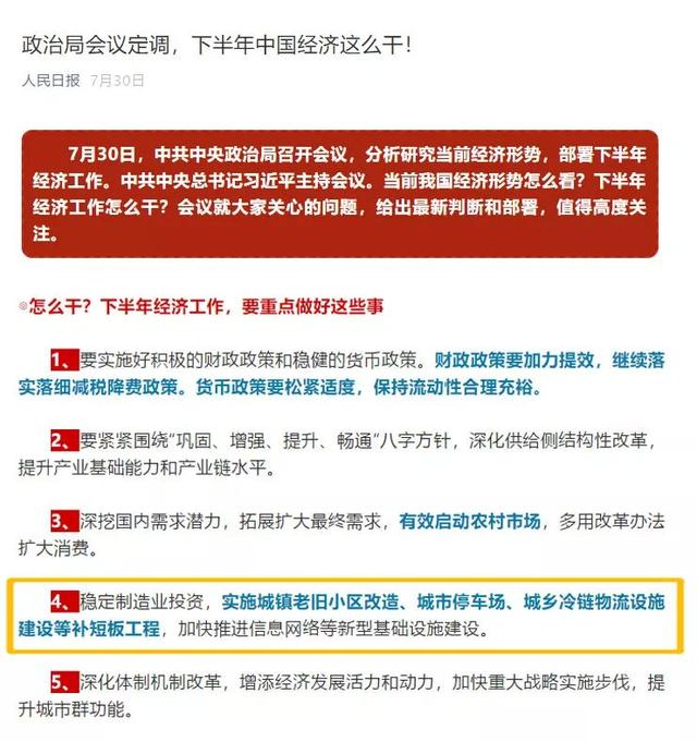 今年,“城市停车场”首次出现在政治局会议的新闻稿中,明确表示将其作为2019年下半年城市基础设施建设的重点工作。